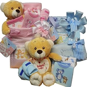 Sweet Baby Diaper Bag Gift Basket with Teddy Bear - Pink Girl or Boy Blue